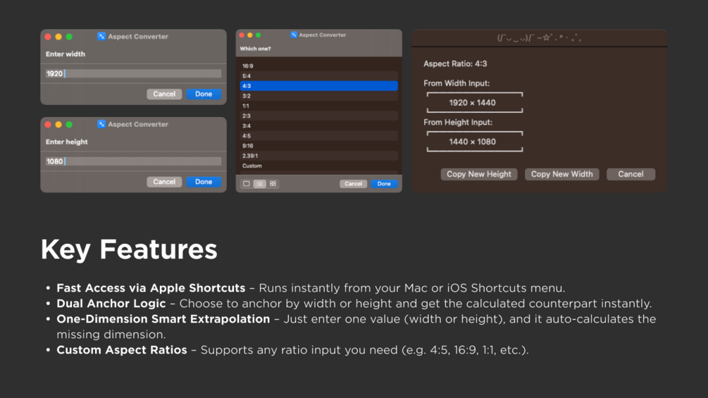 Aspect Ratio Calculator — Apple Shortcuts Tool